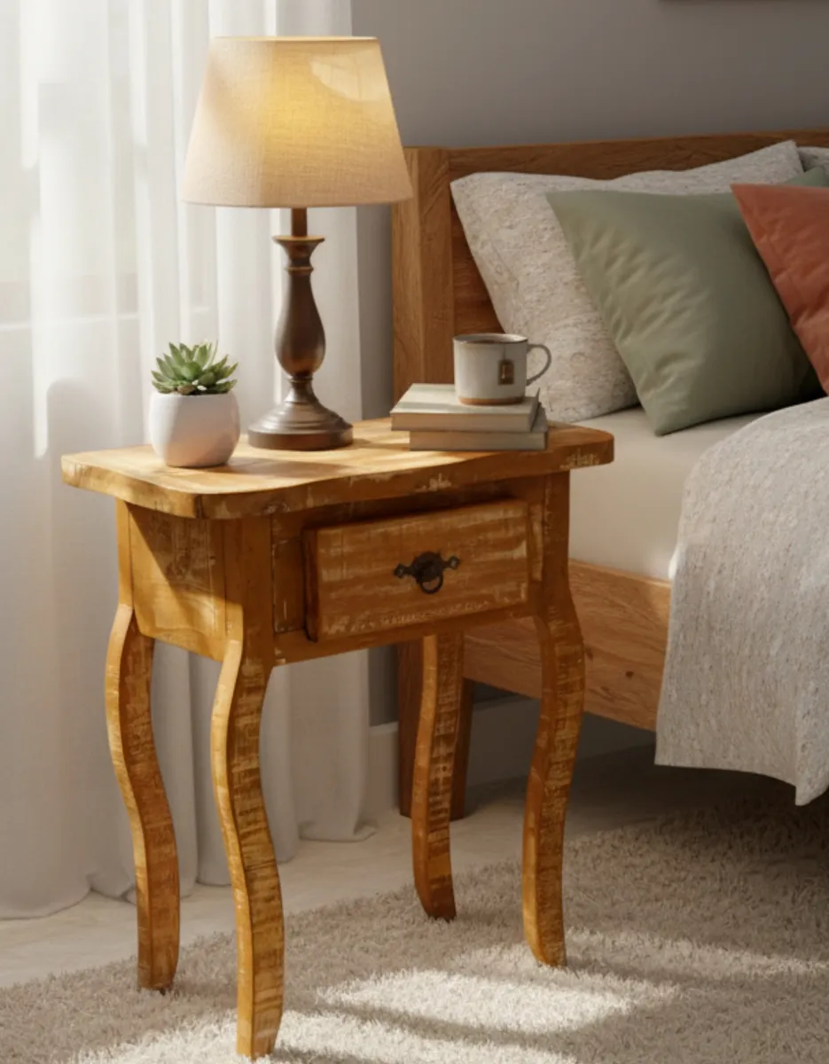 Ideal para uso como mesa de canto, aparador de cabeceira, este móvel compacto se adapta facilmente a quartos, salas ou áreas decorativas. Sua estrutura resistente e a gaveta funcional garantem praticidade no dia a dia, oferecendo um lugar perfeito para organizar objetos pessoais, livros e pequenos acessórios sem perder o charme do estilo rústico.