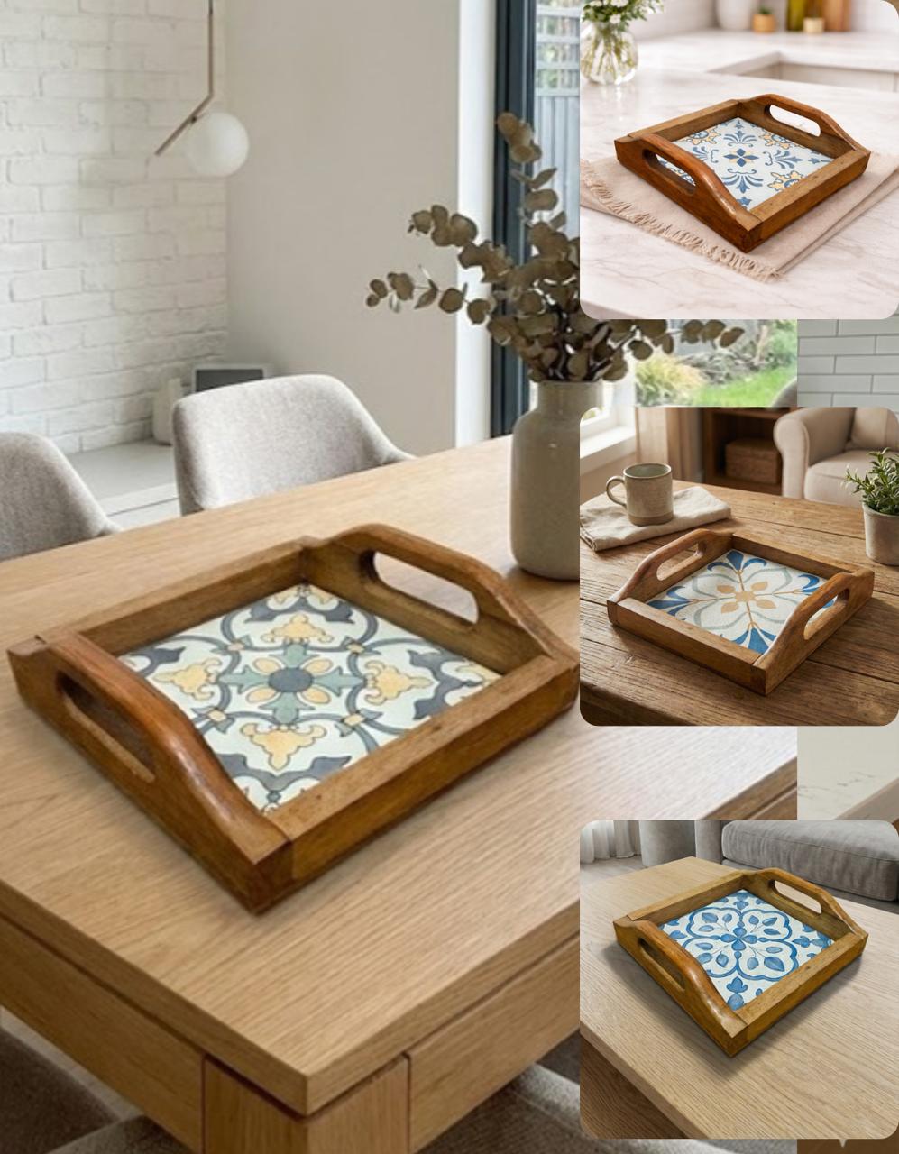 Nossa bandeja é a solução perfeita para quem busca uma petisqueira ou suporte para lanches e frios que seja resistente e encantadora. Feita à mão, ela une a robustez da madeira com a beleza das estampas em porcelanato, entregando aquela sensação de "casa de vó" com um design vintage sofisticado. É o item que faltava para o seu organizador para cantinho do café ou para aquele café da manhã na cama especial.