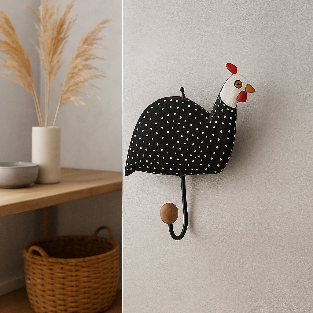 Itens inclusos: 01 Cabideiro/Porta Pano modelo Galinha d'Angola.