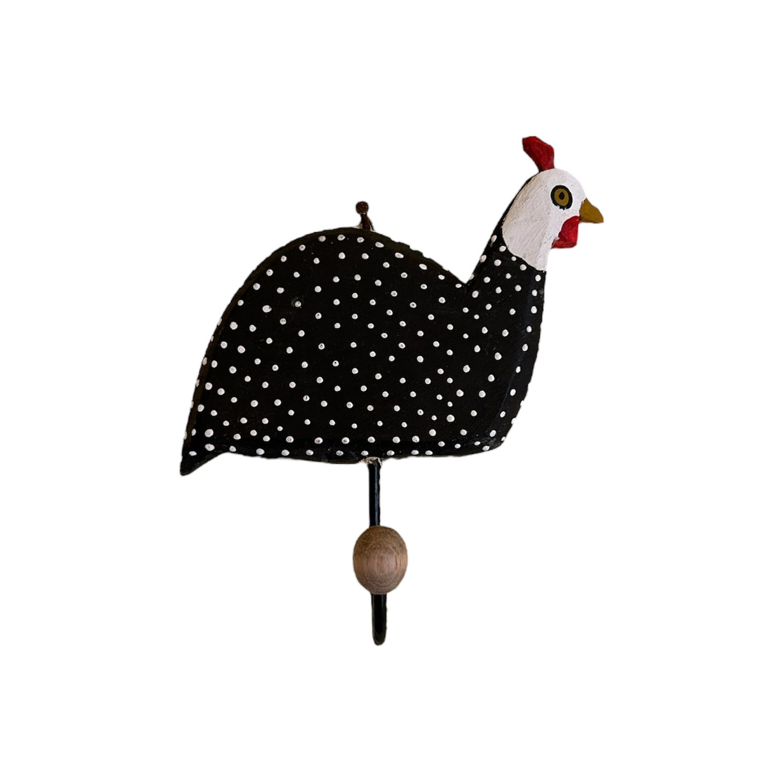 Adicione um toque de charme rústico e funcionalidade à sua casa com este cabide artesanal em madeira com galinha d’angola!