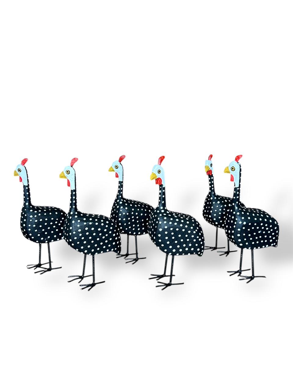 Esse kit com 6 Galinhas-d’Angola em madeira é feito à mão, peça por peça, garantindo exclusividade em cada detalhe.