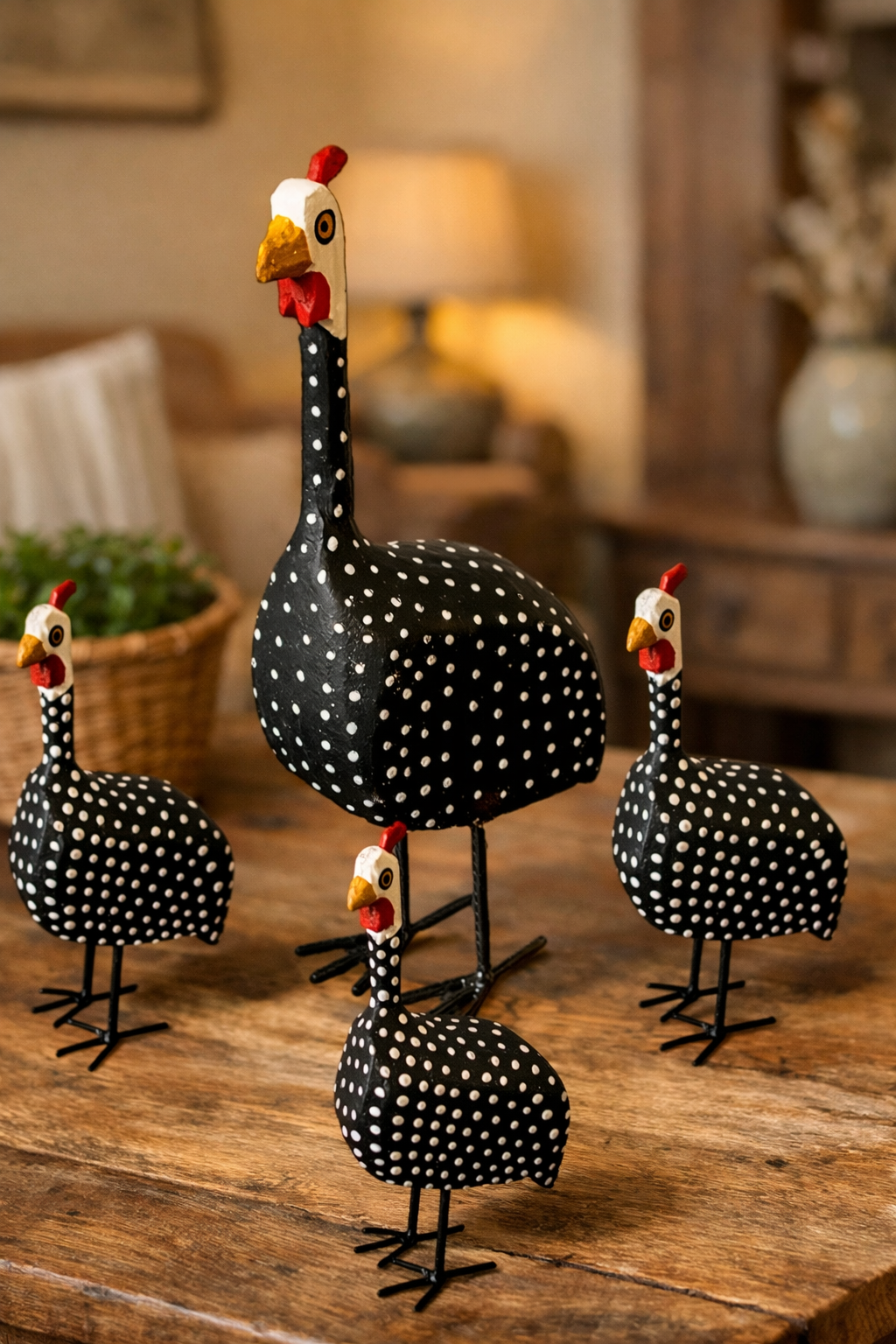 Se você está procurando um toque rústico e charmoso para sua decoração ou quer adicionar um pouco de diversão e personalidade para seu jardim, uma família de galinhas D'Angola de madeira artesanal pode ser exatamente o que você precisa!