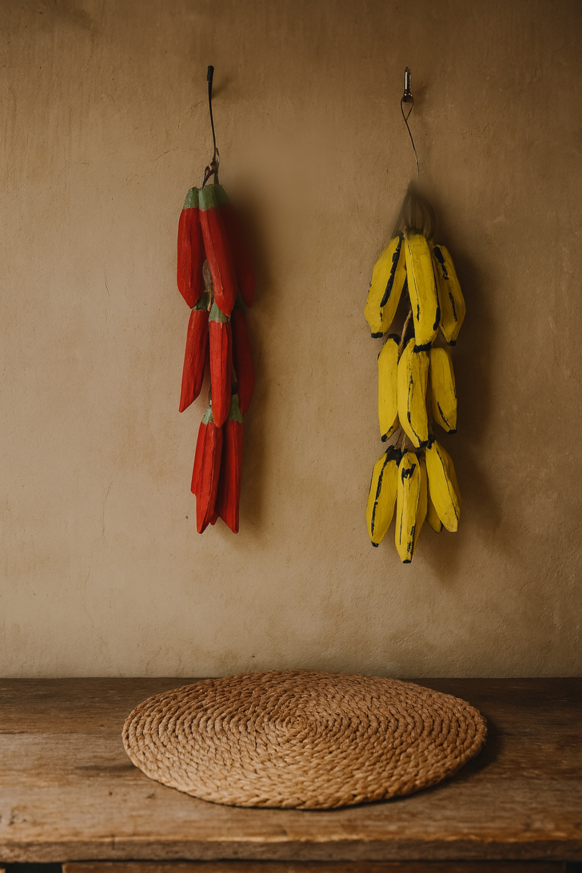 O Kit Pencas Fieira Madeira Banana e Pimenta é a solução ideal para quem busca uma decoração autêntica. Com este cacho duplo, você une o melhor do artesanato em madeira, com peças pintadas à mão que trazem vida, cor e a verdadeira sensação de uma casa mineira para o seu lar. É o diferencial rústico que faltava na sua parede ou área gourmet.