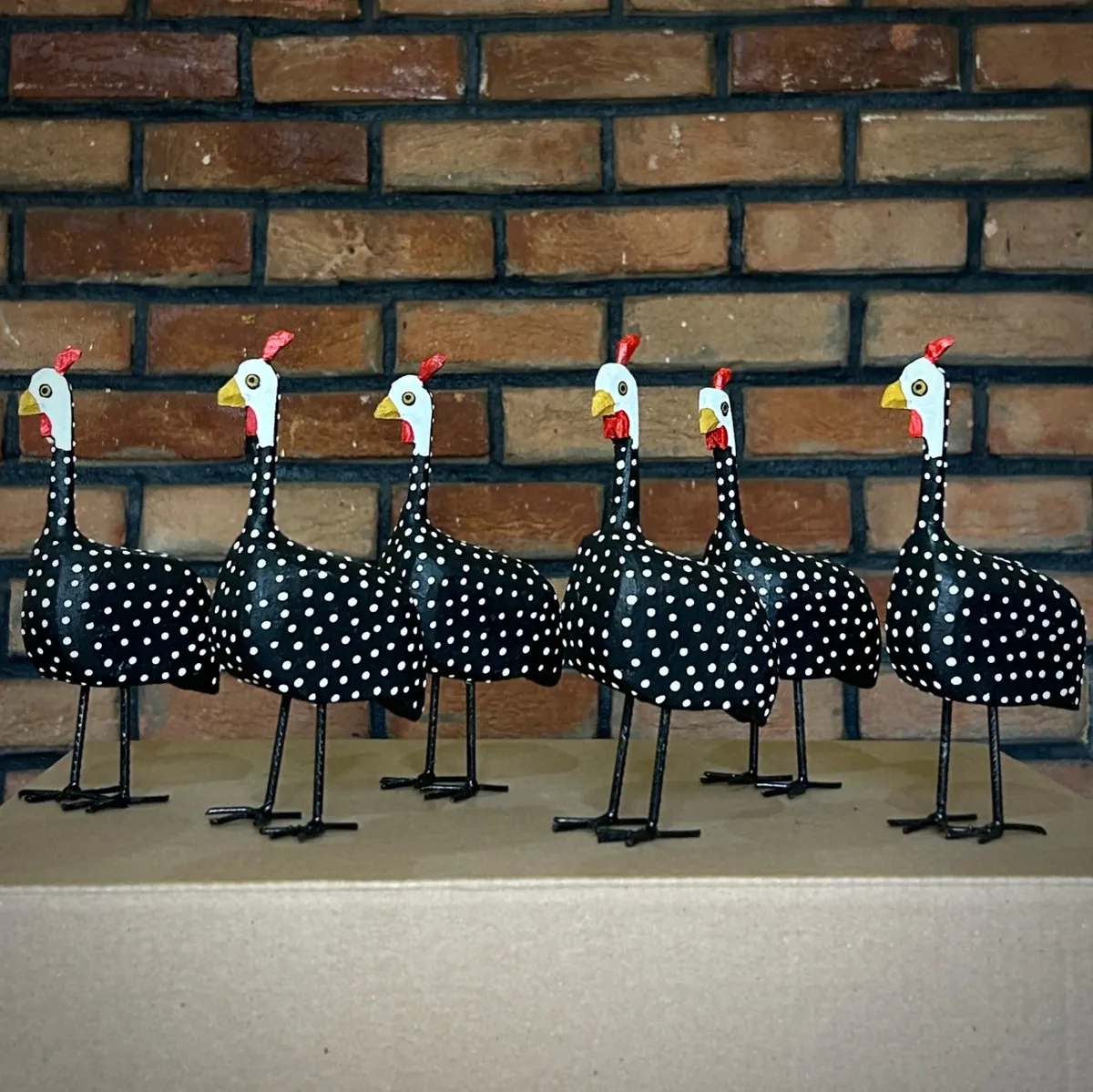 Esse kit com 6 Galinhas-d’Angola em madeira é feito à mão, peça por peça, garantindo exclusividade em cada detalhe.