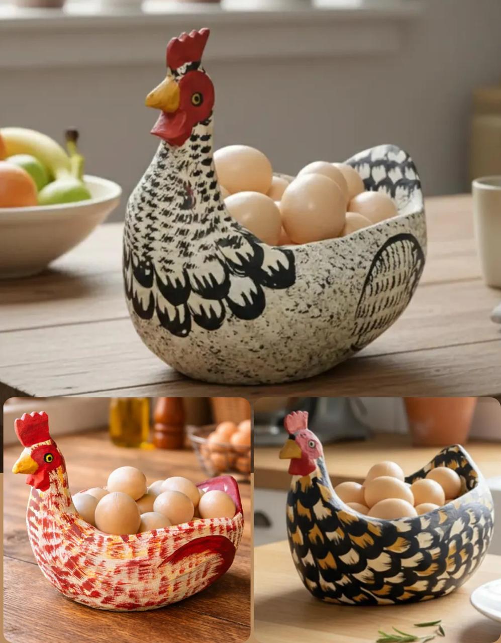 O nosso Suporte Organizador de Galinha é a solução perfeita para tirar os ovos das embalagens de papelão e dar a eles um lugar de destaque. Além de organizar, ele entrega aquela sensação de acolhimento e "casa de vó" que todo lar merece, com a resistência do metal e a beleza da pintura artesanal.